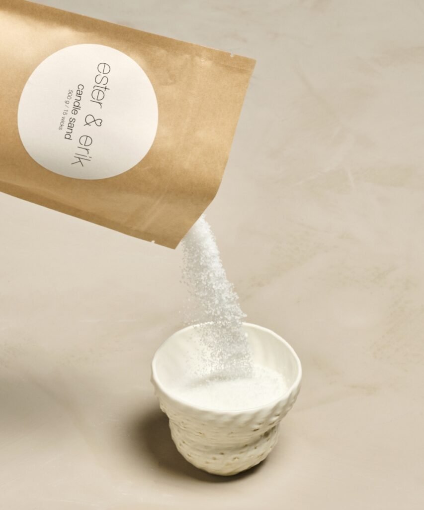 ester & erik lyspulver er lavet af naturlige ingredienser uden skadelige tilsætningsstoffer og indeholder en blanding af vegetabilske voksarter som soya og raps.